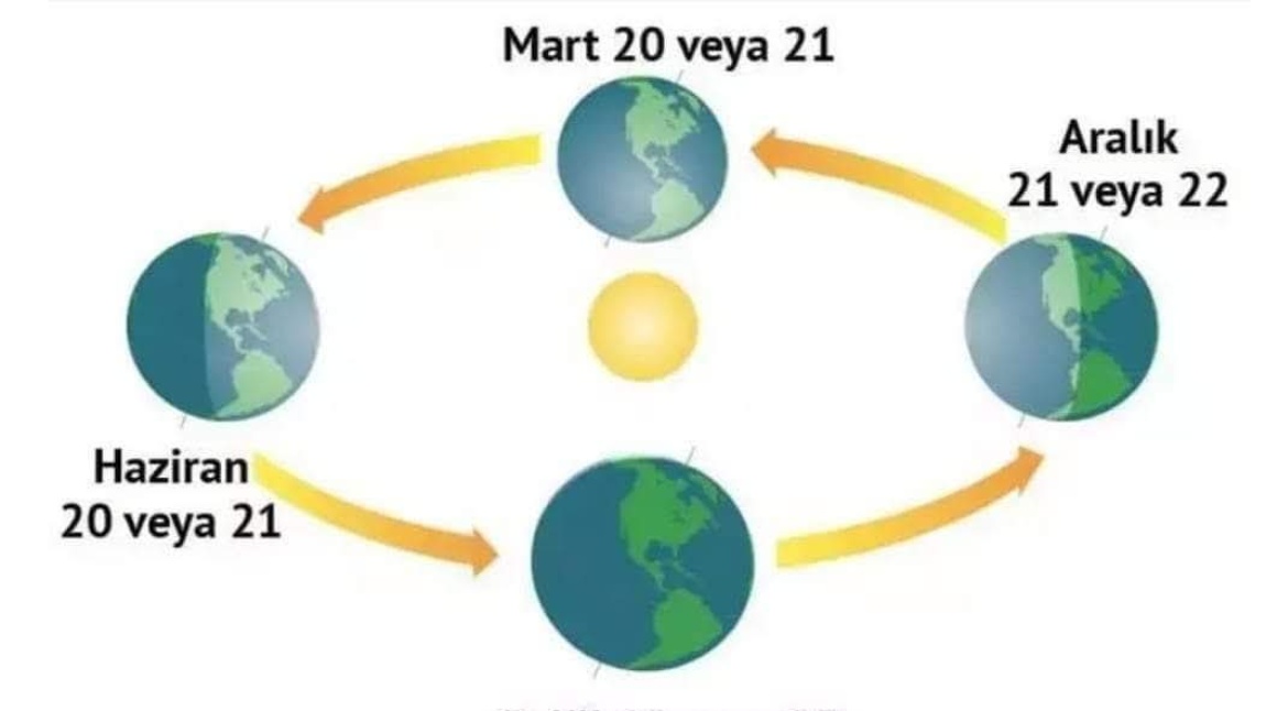 Kuzey Yarımkürede 21 Mart ilkbahar, 23 Eylül sonbaharın başlangıcıdır. Güney Yarımkürede ise, 21 Martta sonbahar 23 Eylülde ilkbahar başlar.